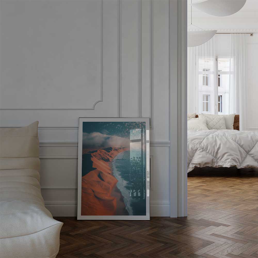Choose from three premium paper options — Museum-quality, Premium, or Classic — each carefully selected to highlight the warm tones of the dunes and the cool hues of the ocean.