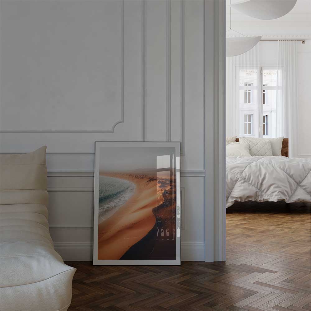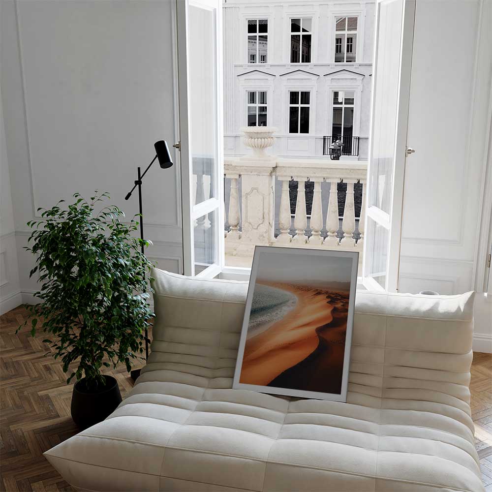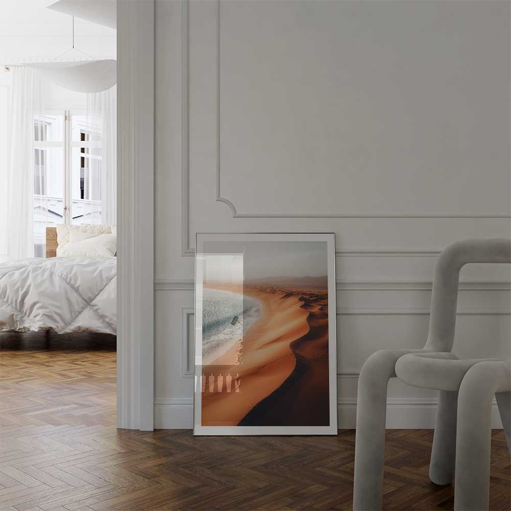 Choose from three premium paper options — Museum-quality, Premium, or Classic — each carefully selected to highlight the warm tones of the dunes and the cool hues of the ocean.