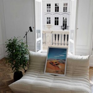 Choose from three premium paper options — Museum-quality, Premium, or Classic — each designed to highlight the intricate details of the car and the warm, soft tones of the desert.