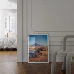 Choose from three premium paper options — Museum-quality, Premium, or Classic — each designed to highlight the intricate details of the car and the warm, soft tones of the desert.