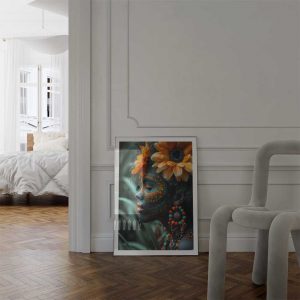 Capture the elegance and vibrant spirit of Sudanese beauty with this striking wall print, featuring a graceful woman adorned with flowers in her hair and colorful beaded earrings. The image radiates cultural richness and natural beauty, bringing an exotic touch to any space.