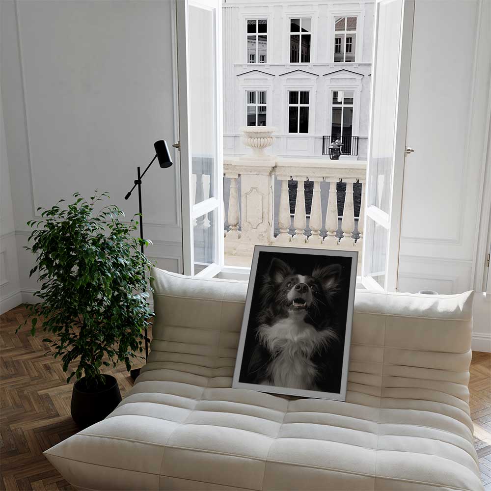 Choose from three premium paper options — Museum-quality, Premium, or Classic — each designed to highlight the fine details and vibrant tones of this cheerful companion.