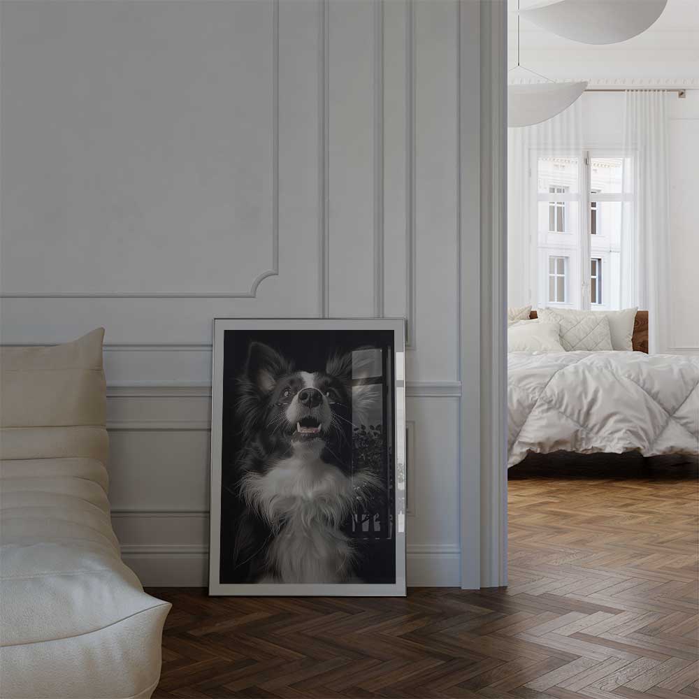 Whether as a statement piece for dog lovers or a heartfelt gift, this portrait captures the essence of the Border Collie’s endearing personality, making it a delightful addition to any collection.
