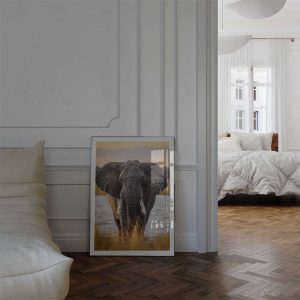 Capture the untamed beauty of Africa with this striking wall print, featuring an African Elephant walking gracefully through one of Africa’s vast rivers. This portrait reflects the elephant’s strength and calm resilience against a backdrop of natural wilderness.
