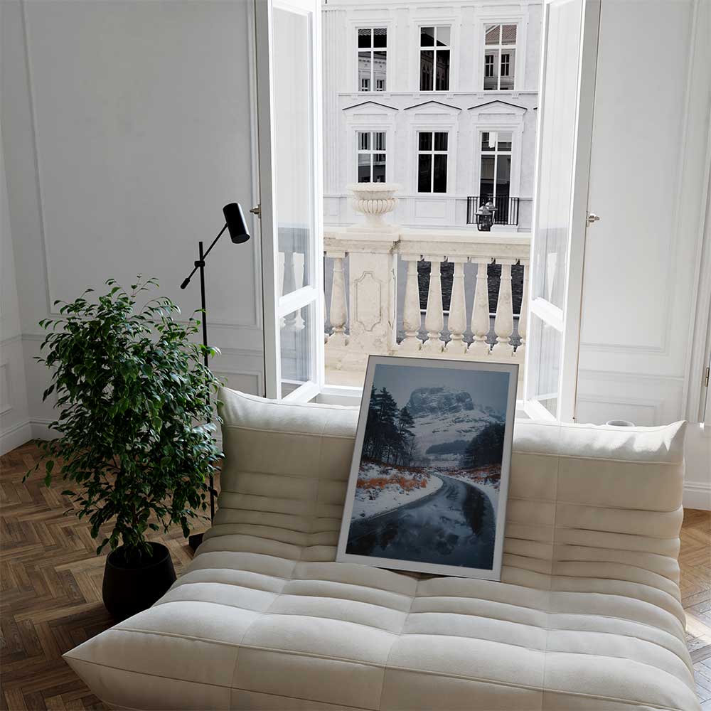 Choose from three premium paper options — Museum-quality, Premium, or Classic — each crafted to enhance the fine details and cool tones of the scene.