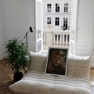 Capture the fierce elegance of the wild with this mesmerizing portrait of a leopard perched in a tree, gazing directly at you. This print invites the intense connection between predator and viewer, showcasing the leopard’s strength, grace, and allure.