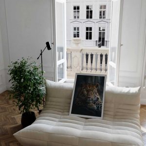 Capture the fierce elegance of the wild with this mesmerizing portrait of a leopard perched in a tree, gazing directly at you. This print invites the intense connection between predator and viewer, showcasing the leopard’s strength, grace, and allure.