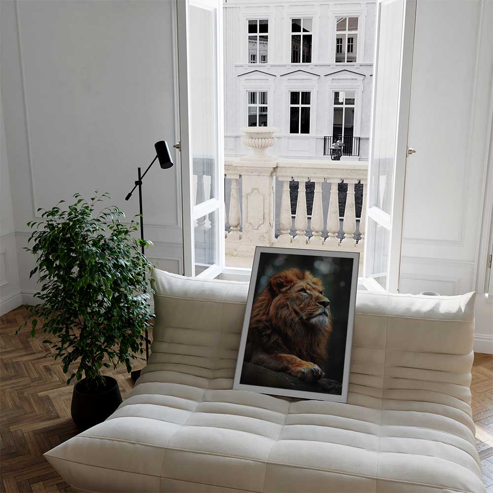 Perfect for adding a bold, natural statement to any room, this print makes an ideal gift for wildlife enthusiasts and those captivated by the strength and grace of the African lion.