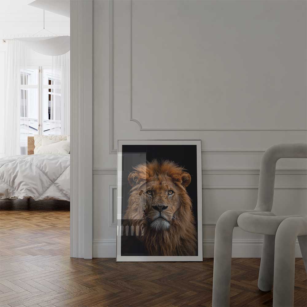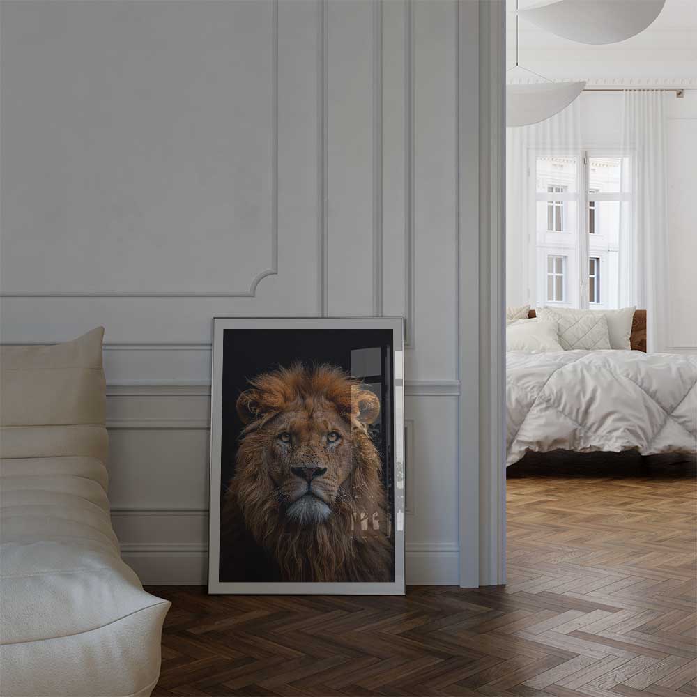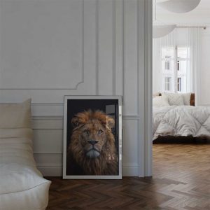 Bring the majestic presence of the African savanna into your home with this stunning portrait of a lion, capturing its regal gaze and powerful features.