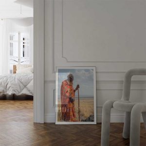 Capture the wisdom and strength of tradition with this powerful portrait of a Maasai elder, standing proudly in the vast plains with his walking stick. His weathered features and timeless attire speak of a life intertwined with the land, embodying resilience and heritage.