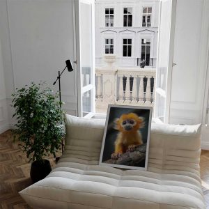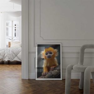 Celebrate the lively charm of the wild with this captivating portrait of a small yellow monkey, its vibrant coat and curious expression bringing an energetic warmth to the scene. This artwork captures the unique beauty and playful spirit of one of nature’s most endearing creatures.