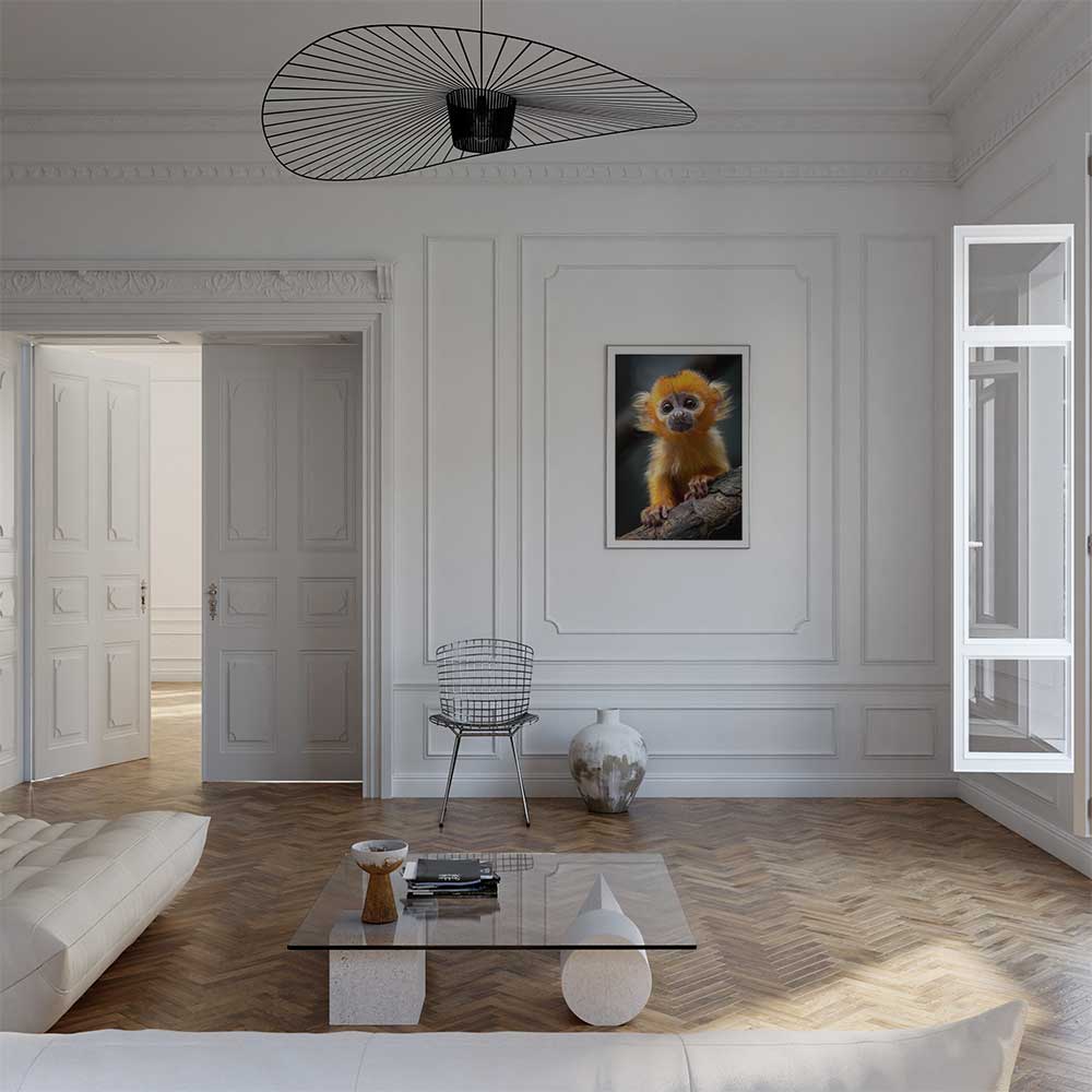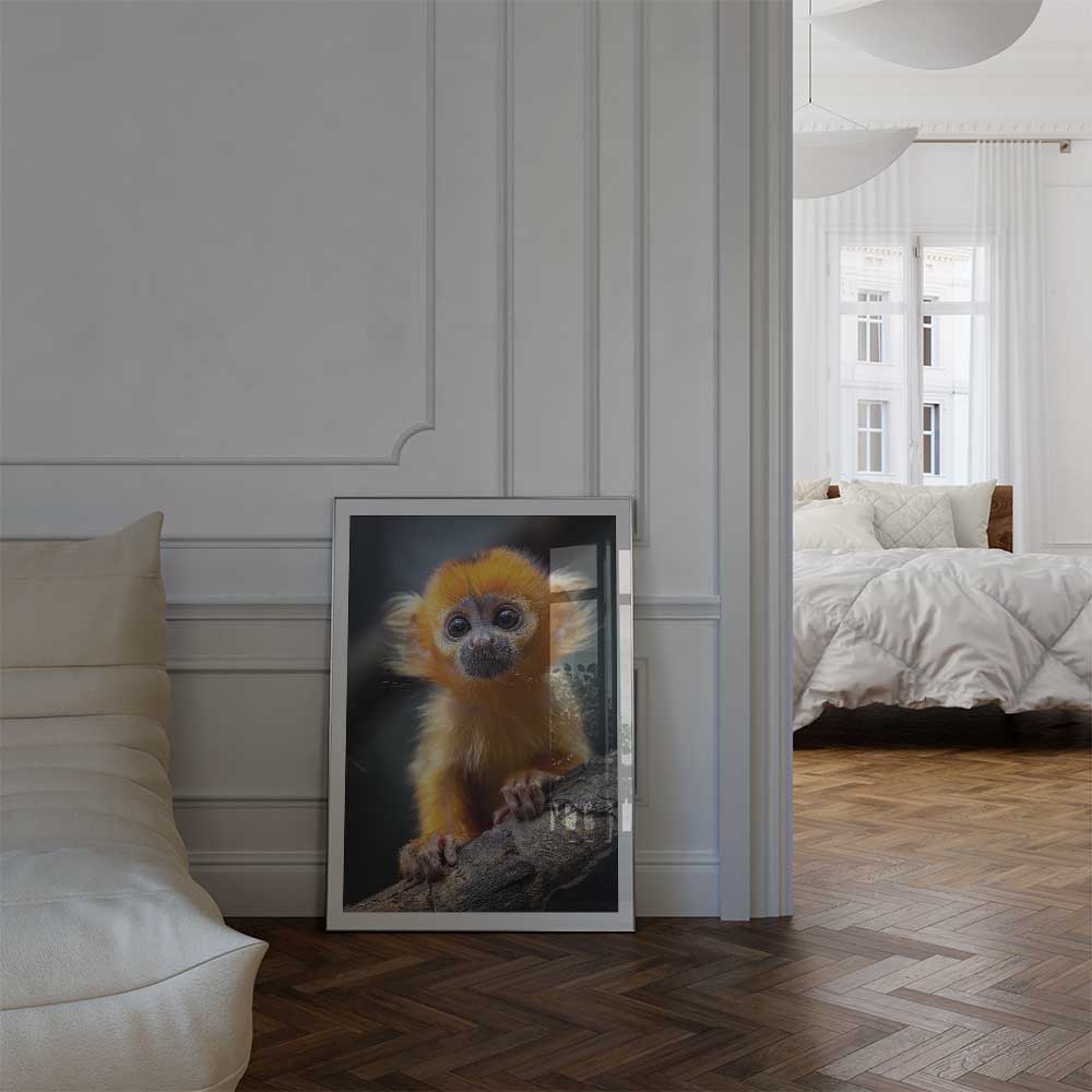 Celebrate the lively charm of the wild with this captivating portrait of a small yellow monkey, its vibrant coat and curious expression bringing an energetic warmth to the scene. This artwork captures the unique beauty and playful spirit of one of nature’s most endearing creatures.