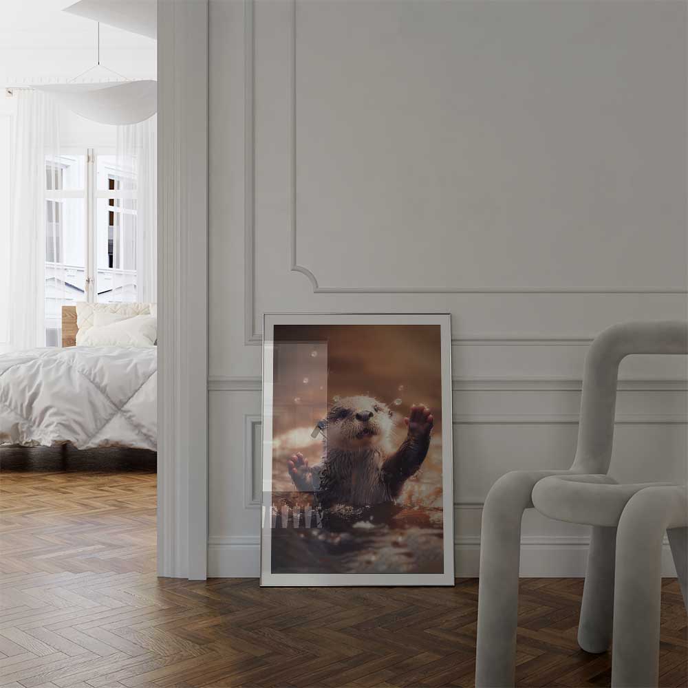 Capture the charm of the Scottish Highlands with this adorable wall print of a baby otter floating in clear, tranquil waters.