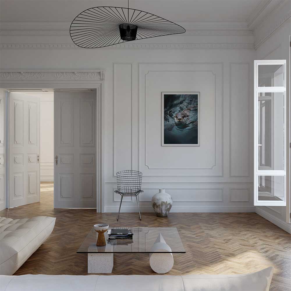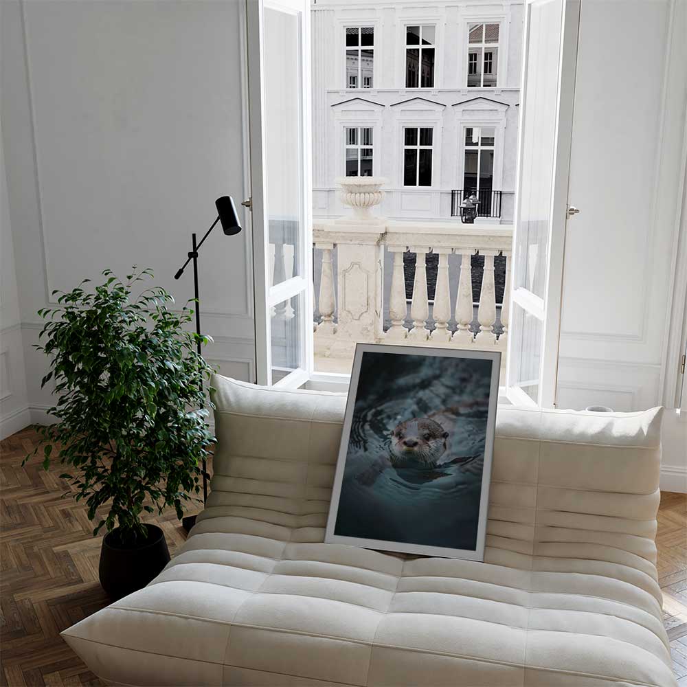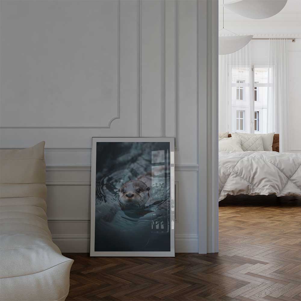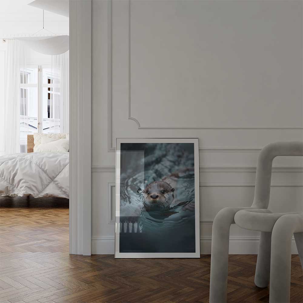 Capture the charm of the Scottish Highlands with this beautiful wall print of an otter floating in clear, tranquil waters.