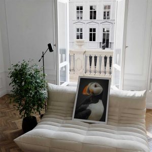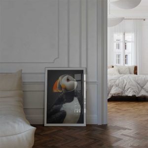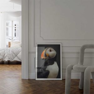 Discover the coastal allure of Scotland with this captivating wall print of a puffin.