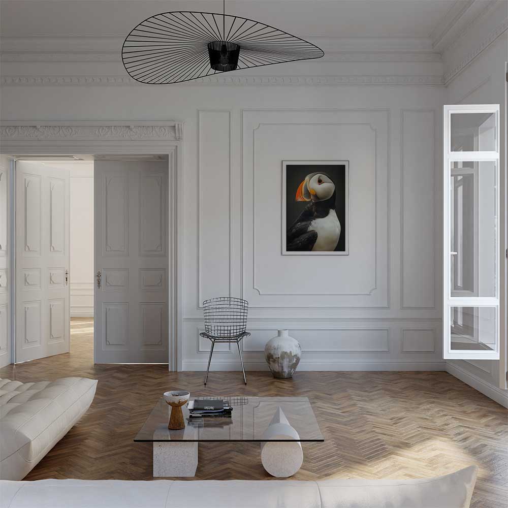 Discover the coastal allure of Scotland with this captivating wall print of a puffin.