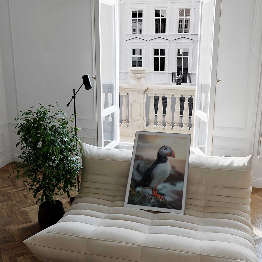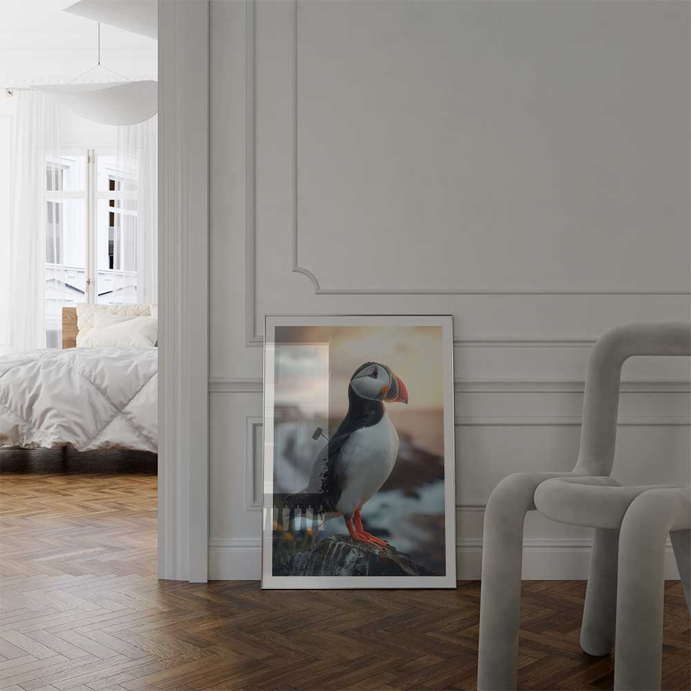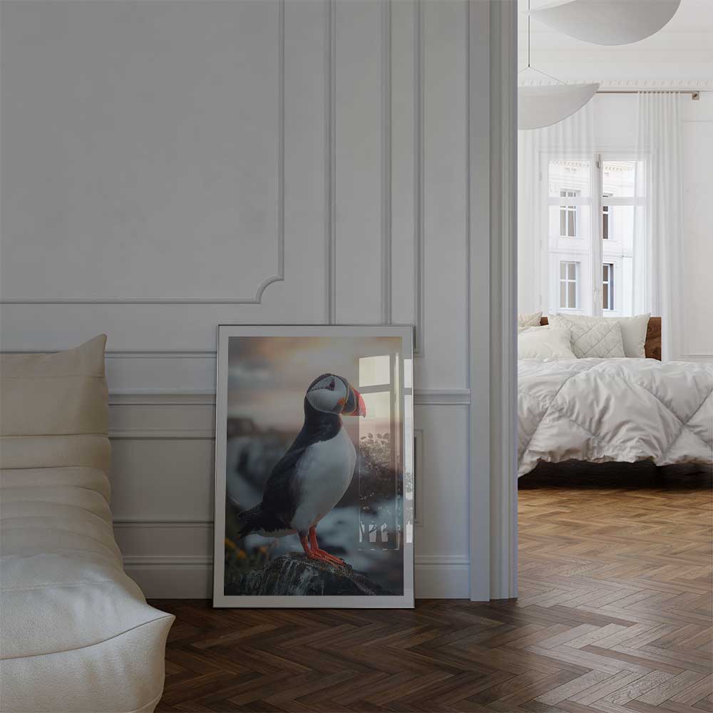 Discover the coastal allure of Scotland with this captivating wall print of a puffin.