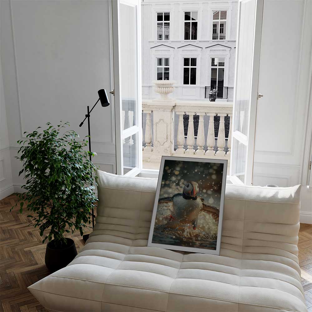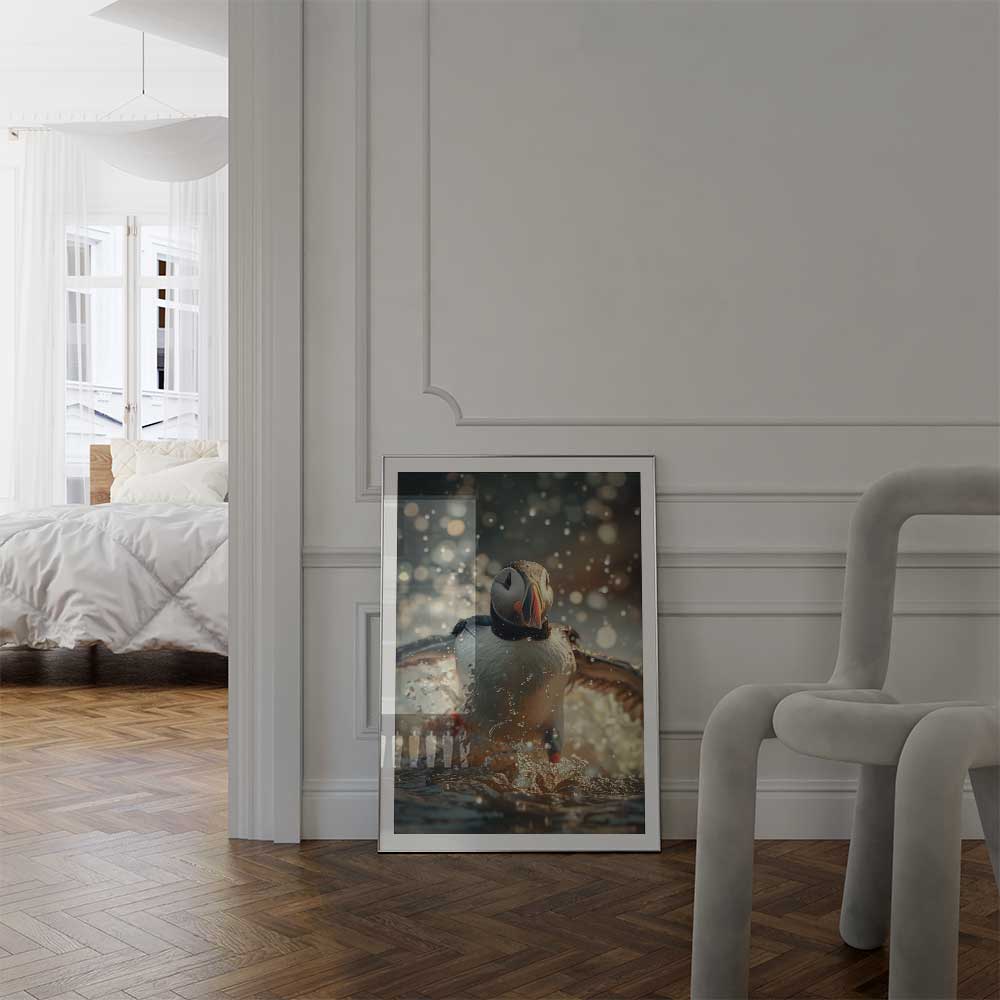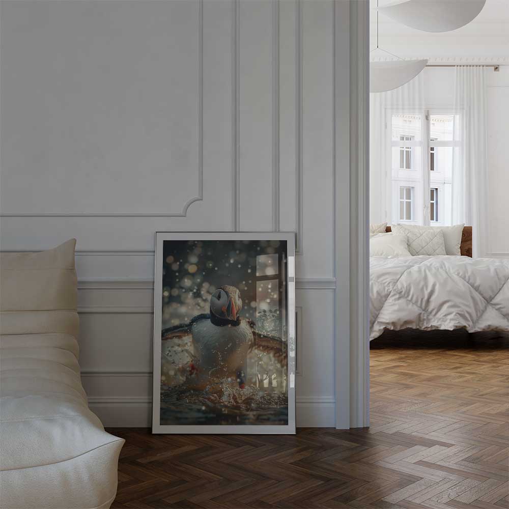 Discover the coastal allure of Scotland with this captivating wall print of a puffin.