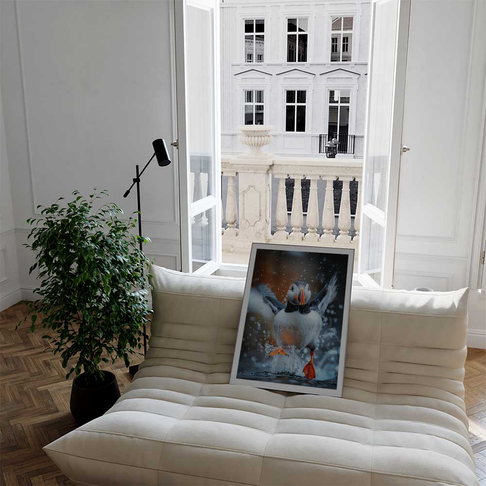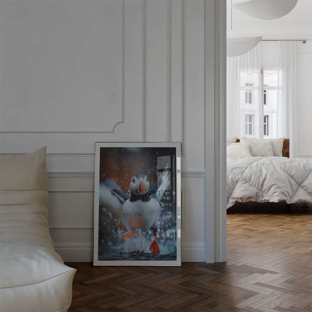 Discover the coastal allure of Scotland with this captivating wall print of a puffin.