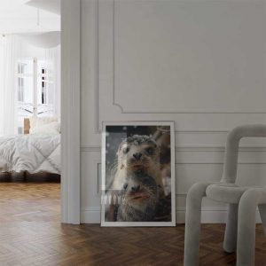 Explore the serene beauty of Scotland’s coast with this enchanting wall print of a seal and her pup, basking peacefully in its natural surroundings.