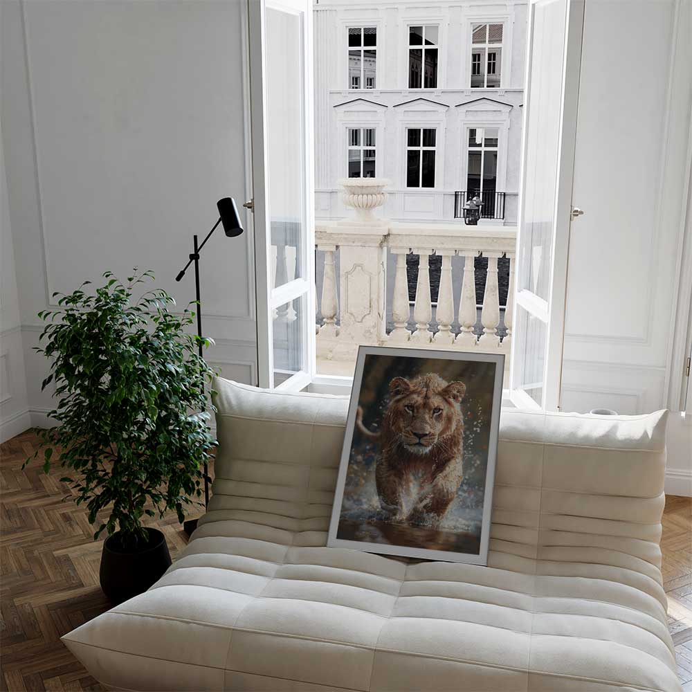 Available in sizes A4, A3, A2, and A1, this print brings the thrill and intensity of the wild into any space, highlighting the lion’s majestic presence in motion.